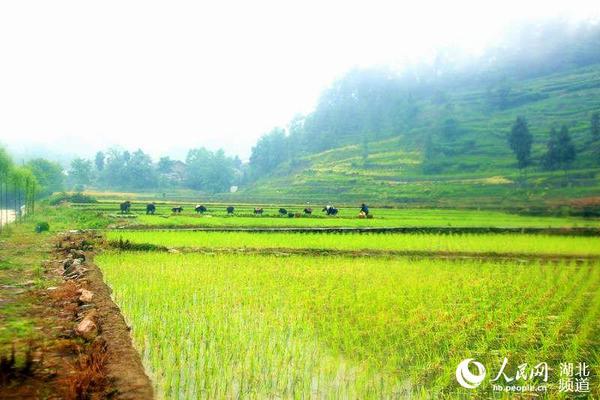 人民网秭归5月21日电 5月20日是芒种,天气阴沉,细雨霏霏。在湖北秭归土家第一村——九畹溪镇石柱土家族村圣天冷水大米示范基地里,人声喧哗,笑语不断,20多个土家村民头戴斗笠,身披蓑衣,在冷水稻田里壊秧,青山流水,秧苗绿绿,如诗如画,成为土家山寨一道靓丽抢眼的风景,助力石柱乡村旅游。
