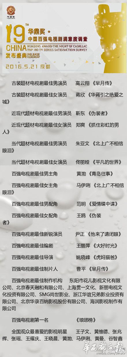 第19届华鼎奖各项奖项揭晓