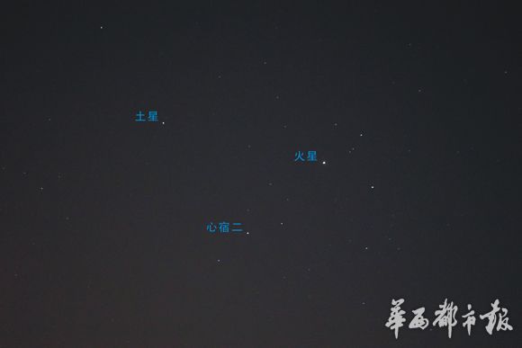 近日星图:火星、土星和心宿二在天空中的位置。李建基广州摄。
