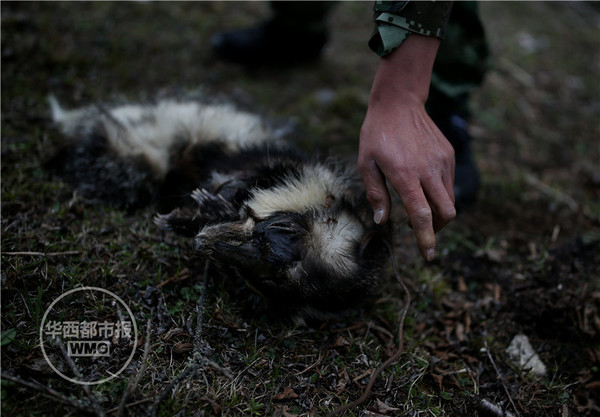 发现一只死去的生灵,当地人称为拱猪,已经被猎套套死。