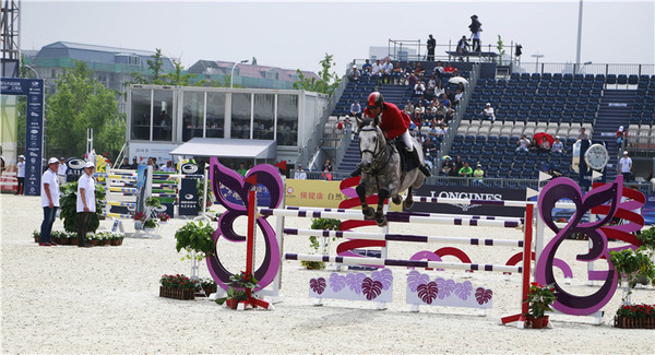 人民网上海5月22日电 (龚莎)22日,2016年中国马术巡回赛“临港科技城杯”上海站在上海中华艺术宫正南侧的马术公园举行,比赛的最后一日也是最精彩角逐最激烈的一日,即将入夏的上海在今日也是艳阳高照,但即便如此,看台上的观众仍是激情满溢,不时为选手们喝彩。