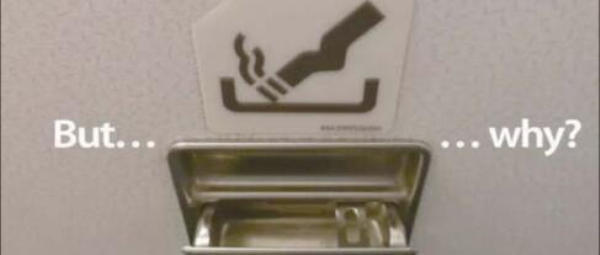 距离可以在飞机上尽情吸烟的“黄金时代”已经有些年头儿了,但是我们仍然能在飞机上,至少是盥洗室里发现烟灰缸的存在。这个问题曾经困扰了我许久,既然禁烟都已经这么多年了,为什么还能在机舱见到它们呢?