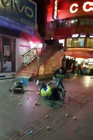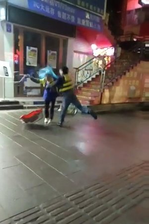 据附近商店老板介绍,被打女商贩挑着两个水果篮,当时正准备收摊回家,不知为何与一名身穿执法背心的男子发生冲突。“那男的看起来像喝醉了,当时有许多路人围观,后来有人报警,女商贩被送去了医院。”