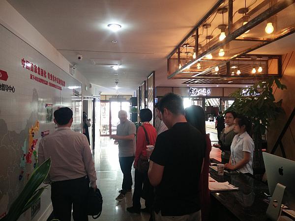 张主任及其领导参观锅先森文化墙,董事长为其讲解锅先森项目的优势及未来发展的广阔前景。