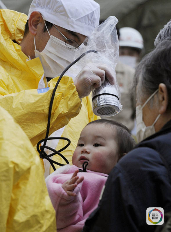 2011年3月15日,在日本福岛县,工作人员对一名儿童进行核辐射测试。新华社/路透