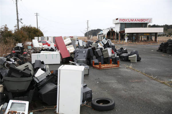 这是2015年3月7日在日本福岛县双叶町拍摄的废弃的房屋和无人处理的垃圾。新华社记者刘天摄