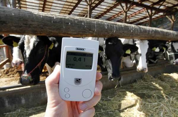 2011年4月13日 ,在日本福岛距福岛第一核电站约50公里处的新地町的一个农场,辐射测量仪显示这里的辐射水平为0.41微西弗/小时。 新华社/路透