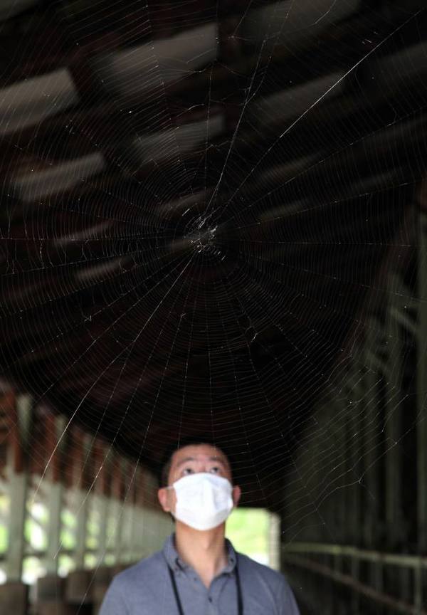 2011年9月11日,在日本福岛县饭馆村,一处闲置的养牛场内已结有蜘蛛网。新华社记者冯武勇摄
