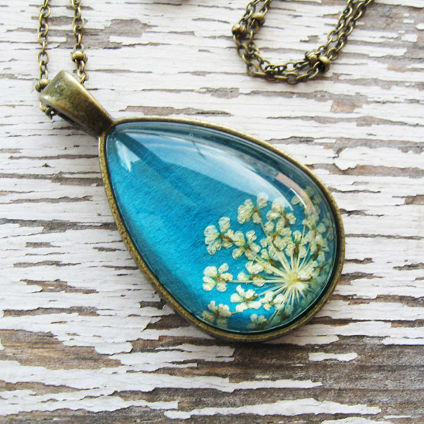 一位美国的设计师,为了帮人穿出“夏天的感觉”,特地设计并且手工制作了一批真花项链。这些项链的吊坠里全部都是压制的真花或者真树叶,让佩戴者全身都充满着大自然的轻灵和清新。