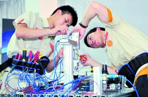 第44届世界技能大赛机电一体化项目广州选拔赛现场。广州日报记者廖雪明 摄