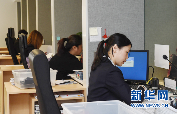 5月20日,在美国首都华盛顿,中国驻美国大使馆领事部的领事们在工作中。新华网记者鲍丹丹摄