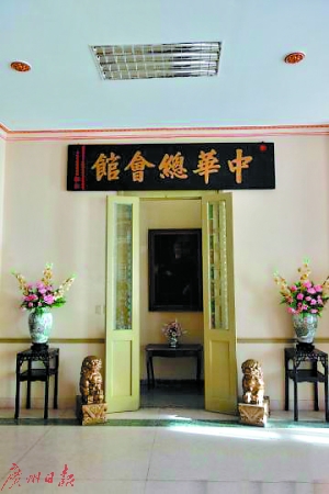 古巴中华总会馆大厅里挂着的“中华总会馆”牌匾。 莫成雄 摄