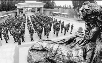 凛冽风沙中,豪迈的《邱少云之歌》响彻长空。