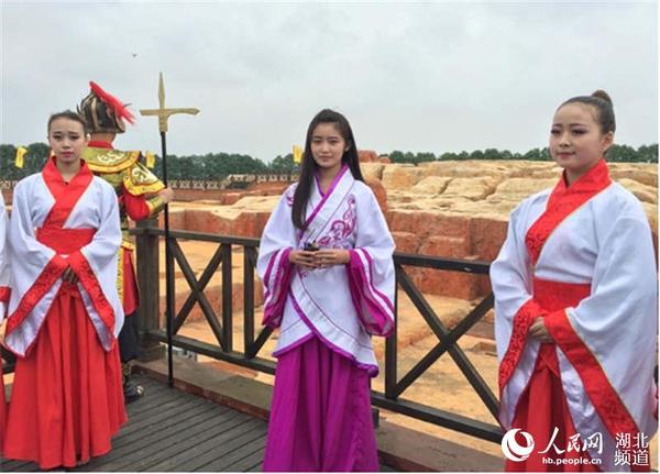 随后,柴蔚换上一身紫色古装,来到章华台基址展示馆,率数名“宫女”登上“天下第一台”,欣赏了我国皇家宫苑园林建筑的鼻祖。