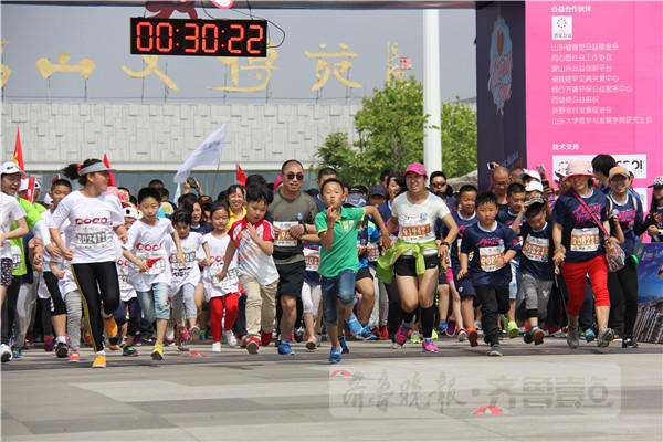 该赛事分为半程马拉松(全长21.0975公里)、短程马拉松(10公里)、家庭迷你马(5公里)三种,通过不同赛项的设置,向目标人群传递马拉松精神和健康跑步理念。8:00,王懿荣广场上已是人头攒动,健身教练带领参赛者们一起做热身操,参加比赛的老老少少、男男女女一起,伴随着动感的音乐跳跳高、压压腿,运动的快乐立刻洋溢在每个人的脸上。8:40,号令枪鸣响,轮椅组率先出发,坚韧的表情、昂扬的斗志让人动容,瞬间点燃全场激情。随后,半程组、短程组、家庭组相继出发,参赛者们精神抖擞、意气风发地冲出起点,阔步飞奔,飘扬的旗帜、流动的笑脸,形成了一股快乐运动的正能量,引得沿途群众纷纷驻足观看,为参赛者们加油鼓劲。