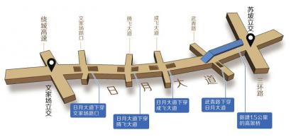 根据改造方案,三环苏坡立交至武青北路将新建高架1.5公里;武青北路口以西至文家大道路口主线采用平面加下穿隧道形式,共有4处下穿,分别为日月大道下穿成飞大道、腾飞大道、文家场路口、武青路下穿日月大道,全长约4.1公里。现状路面宽40米,改造后路面宽65米。