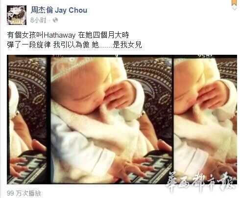 周杰伦30日凌晨突然曝光了新专辑中为女儿小周周写的歌,这首名为《前世情人》的MV歌词中写着:“有个女孩叫Hathaway,在她四个月大时,弹了一段旋律,我引以为傲,她......是我女儿。”MV中周董为小周周设想她从小到大的成长样貌,歌曲中藏满满父爱也令人为之动容。