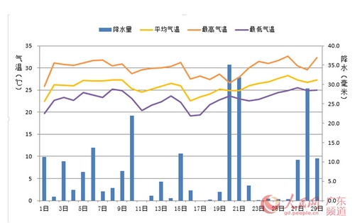 5月1日~29日,广东全省平均降水量与气温逐日变化图。广东省气象局供图