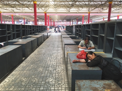 记者走访发现,潘家园旧货市场大棚摊位一共分四个区,每区26排,每排23个摊位。一区除1至5排摊主仍在营业外,其余21排摊位无人营业,商品全部撤下。