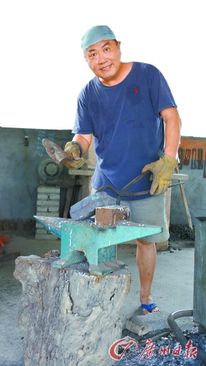 他铸刀用的空气锤是1965年出厂的“古董”。