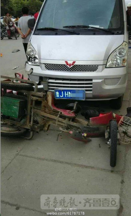 5月31日下午6时许,在泰安创业大街凤台村路口,一辆面包车突然失控,连撞两辆电动车、一辆三轮车,致电动车、三轮车驾乘人员六人受伤,面包车驾驶员当场死亡。
