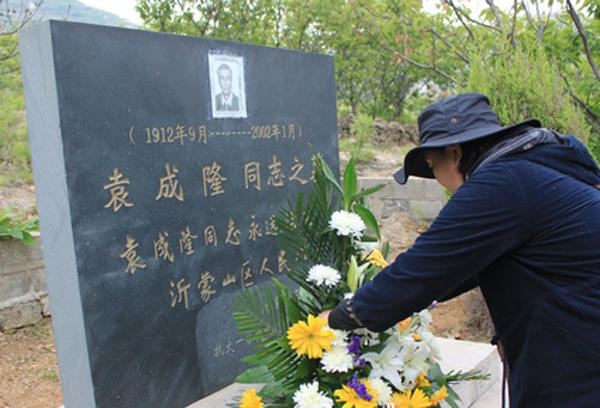 袁成隆生前曾对家人立下遗嘱,自己的骨灰要分成三部分,一部分葬在八宝山,一部分葬在沂蒙山,另外一部分撒在沂河当中。2003年8月23日,袁成隆的部分骨灰被安放在费县望海楼子山东麓白石屋山坡上,实现了这名革命老战士的夙愿:魂归沂蒙,长眠在这块英雄的土地上。![]()