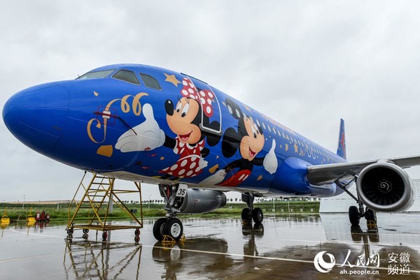 人民网合肥6月1日电(苗子健 杨帅 王志刚)6月1日,正值“六一”儿童节,一架涂有迪士尼童话城堡以及米老鼠卡通形象的彩绘飞机降落在合肥新桥国际机场,为节日里的孩子们送上了一份特殊的礼物。