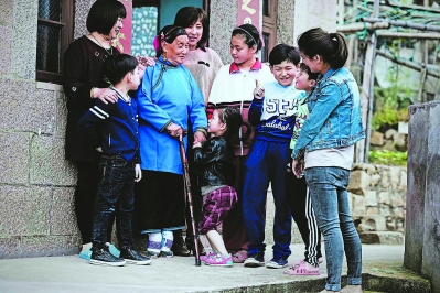 图①:看着儿孙们快乐地成长,吴奶奶说自己过得非常开心、幸福。