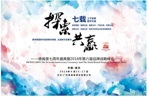 聚焦裂变时代新经济,探索酒市变革与创新!2016年6月15日-17日,广州德威堡酒业有限公司将于重庆市隆重举办德威堡七周年盛典,暨第六届品牌成长战略峰会“探索与共赢”,届时将诚邀德威堡全国优秀品牌合作商同往,共同探讨新经济常态下终端市场的战略布局与互惠共赢。作为一家专业、系统,具备引导性的进口葡萄酒企业,德威堡每年一度的品牌战略峰会,可称为具职业化、专业化、系统化、国际化、规格化、精神化与文化体系为一体的葡萄酒界NBA。