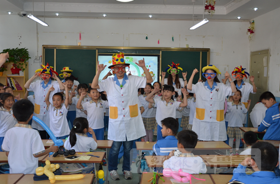 而走进校园,一走进孩子们面前,小朋友们热情的欢呼声和掌声顿时感染着我们每一位小丑医生。我们尽其所能,讲解PPT、情景剧表演、游戏互动,在传递医疗科普知识的同时,我们也把快乐带给了每一个孩子。这就是我当时决心引进这一先进的医疗观念,向孩子们展示小丑医生欢乐积极的一面,达到欢笑治疗、欢乐学习的目的。