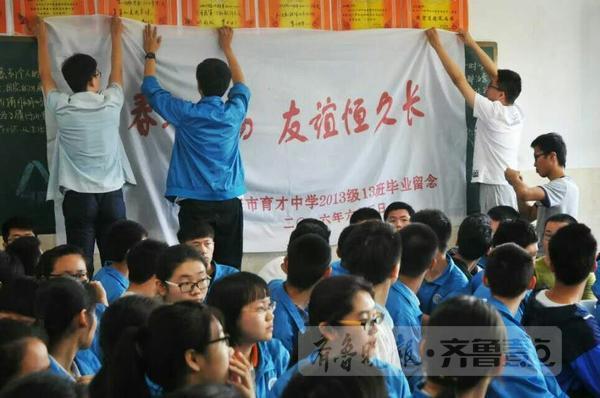 青春不散场,友谊恒久远。4日,济宁育才中学,一场别样的班级毕业典礼在2013级13班举行。孩子们都用心张罗了属于这间教室里的最后一次聚会,仪式感浓重。简单的话语却敲击着每一位班级成员的内心,过往的点点滴滴涌上心头,也许不远的明天,他们就要各奔前程,于是,他们用手机记录着校园的点滴,好同学的每一个微笑的面孔。
