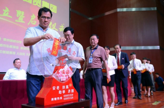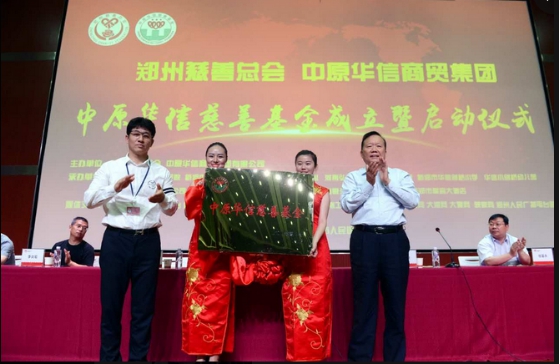 在欢快的乐声中,郑州慈善总会姚待献会长与中原华信商贸集团董事局主席李向阳共同为中原华信慈善基金揭牌,这标志着中原华信慈善基金成立并正式启动。