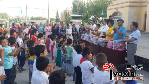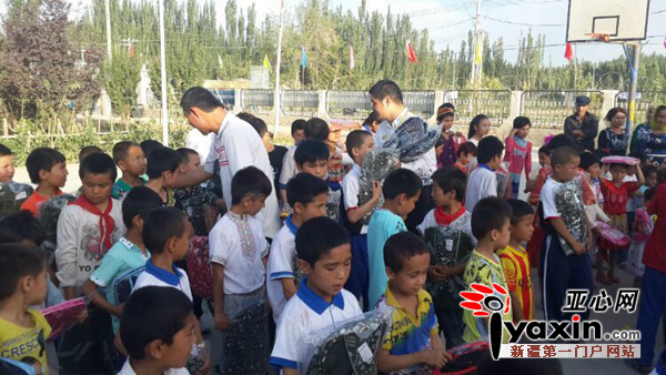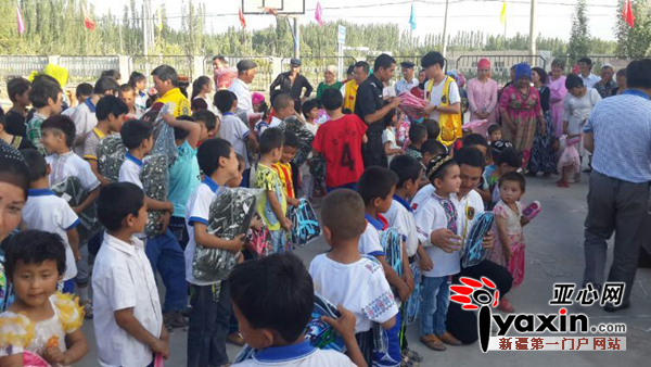 亚心网讯(通讯员 雷志明)在恰逢第67个“六一国际儿童节”之际,新疆妇女儿童基金会、广东狮子会金狮服务队、企业家爱心人士没有忘记去年与麦盖提县尤勒滚鲁克村儿童的约定,带着爱心礼物联合新疆财经大学住尤勒滚鲁克村工作组,风尘仆仆,不远万里为孩子们赠送节日书包。