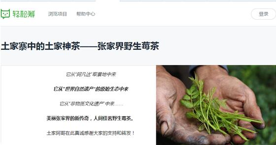 经过一系列的考察,云飞在轻松筹上发起了莓茶的众筹项目,轻松筹的项目上线后,莓茶引起了广大网友的注意,人们自发的把好东西分享传播出去,短短时间就筹得金额就超出了云飞所定的目标。云飞把消息告诉茶农们,大家都开心的合不拢嘴。