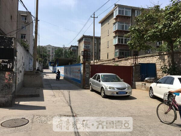益寿路人防虽已暂时停工,仍占用小区道路。齐鲁壹点 记者王皇摄