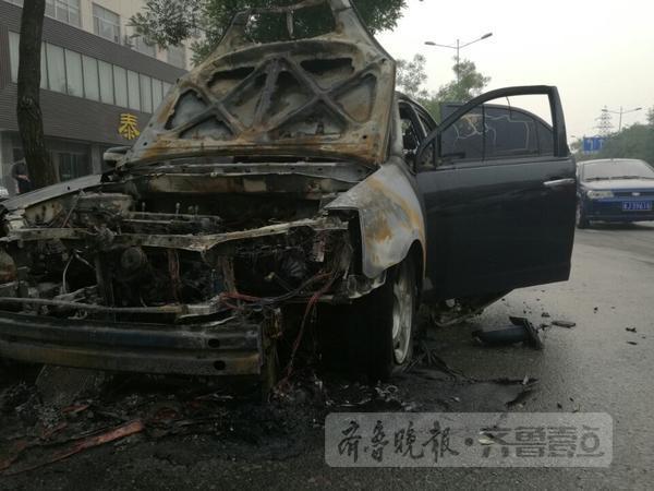 原标题:泰安车主行驶途中发现故障,刚停路边便自燃烧成空壳