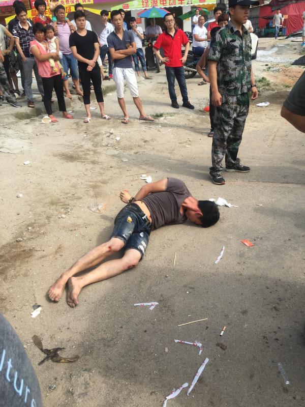 李正义说,5月31日这天,马巷执法中队城管人员来了几十个人,双方发生冲突后,有城管用锄头把打他和他父亲。而后城管将他双手反扣并用绳索捆住。他说,打人的除身着城管制服的马巷执法中队工作人员外,还有多名“迷彩服”。