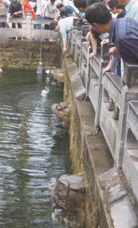 11日,黑虎泉水位一夜跌7厘米,三个兽头全停喷。本报记者周青先摄