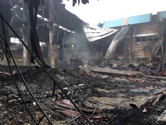 越南平阳省台商工厂遭当地暴民纵火,台商厂区内只剩一片灰烬。