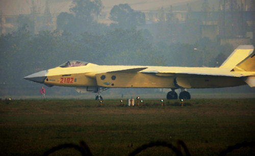 资料图:2101号歼-20黄皮机,军事观察员认为这是歼-20战机从试飞用原型机进化为试量产机型的标志。