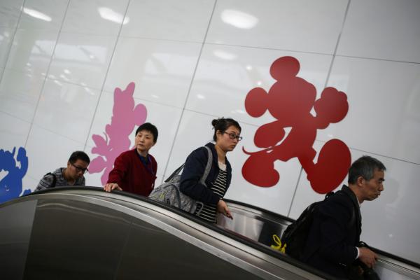 上海地铁11号线迪士尼站,游客乘扶梯上行。 贾亚男 澎湃资料