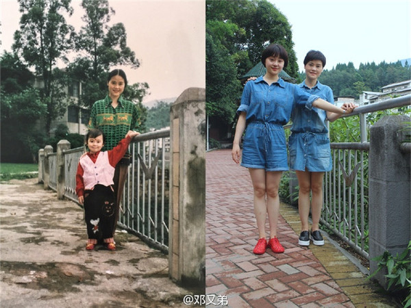 逆生长的邓妈妈杨佳说,他们一家人跟随邓爸爸邓俊良,在川农搬过5次家。去年,邓爸爸所在的院校搬至温江,他们的家再次由雅安搬至温江。“我们也想回味过去,缅怀走过的那些道路,逝去的青春。”杨佳说,找当年的地方用相同的造型拍照是女儿的主意。