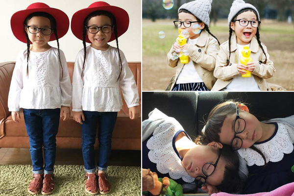 日本4岁双胞胎姐妹梨花和杏菜近日走红网络,招牌短刘海+黑框眼镜再加上妈妈精心搭配的双子穿搭,让她们在短时间内成为日本最红的双胞胎。