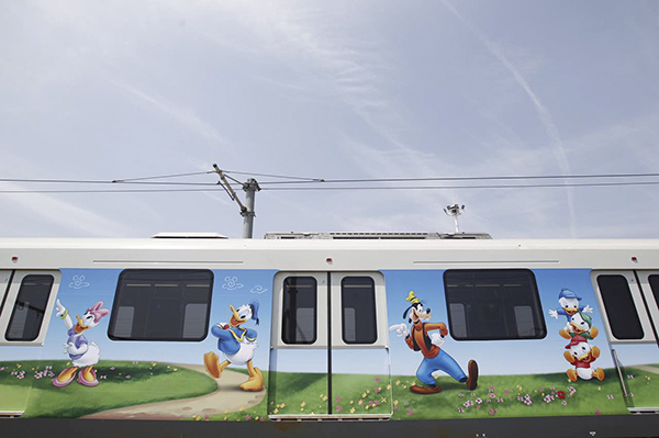 迪士尼主题列车侧面。澎湃见习记者 韦毅 图