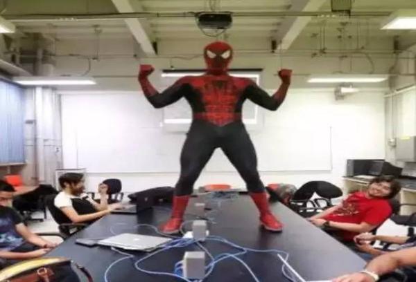这不是蜘蛛侠穿越了,真的是一名大学老师在上课; 这也不是万圣节,他是天天这样!