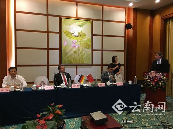官渡区人民政府区长王忠表示,作为南博会场馆所在地,官渡是古滇文化的发祥地,民俗旅游文化资源丰富,同时拥有便捷的陆路、航空等交通进出口通道,是云南交通枢纽的门户核心区和重要的商贸物流集散地。去年,王忠曾到迪岑巴赫市进行交流访问,“如何更好的学习迪岑巴赫市在产业发展、科技创新、生态保护方面的先进禁言,助推官渡发展,是我常常思考的问题。”王忠说,目前,官渡区正在大力推进区域性国际城市建设,围绕商贸物流、文化会展、高新技术等重点产业,积极发展外向型经济,加快开放合作步伐,努力争当昆明市、云南省的排头兵。“通过这次的交流,促进了我们和迪岑巴赫市的合作攻坚,我们期待着和迪岑巴赫市在基础设施、高新技术、文化旅游、生态保护、职业教育等方面展开合作。”官渡区6家重点单位介绍了发展情况和投资返乡,会上参会嘉宾与德方代表就合作与投资问题进行了交流。