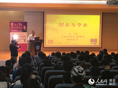 人民网武汉6月15日电 日前,真维斯国际(香港)有限公司董事长杨勋做客武汉纺织大学,围绕“创业与守业”主题与学子们分享心得与体会,并就相关话题展开交流。