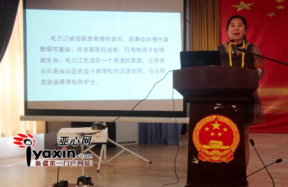 国务院民族团结进步个人、新疆十大杰出青年、自治区农业厅种子管理总站干部王燕娜演讲。