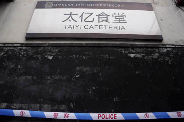 2016年6月16日,上海太亿食堂,门前警戒线。 澎湃新闻记者 贾茹 图