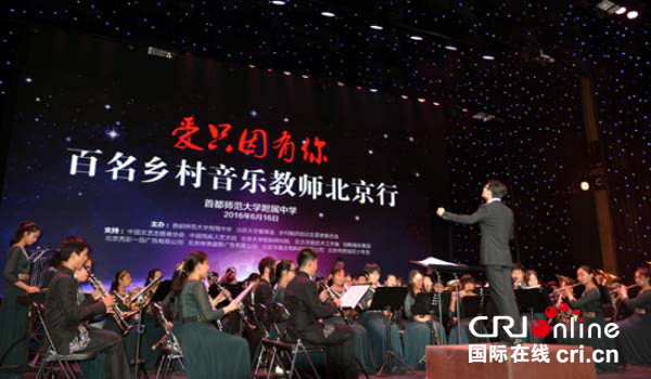 16日,“爱只因有你”百名乡村音乐教师北京行欢迎演出会举行。图为首都师范大学附属中学管乐团合奏《交响序曲》 摄影:彭嘉靖